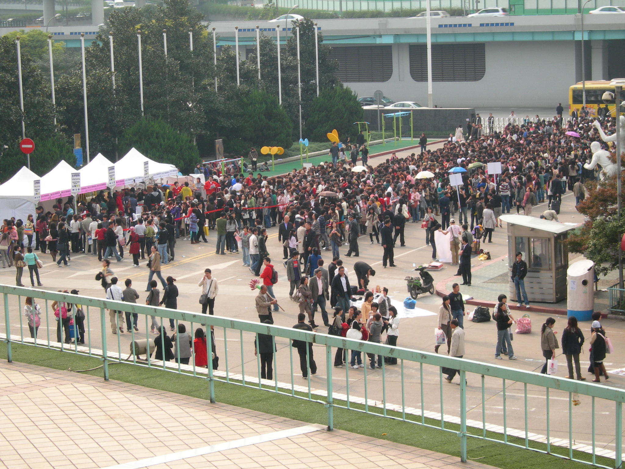 買票之後想說要買倆應援扇,而且又不打算去買内場販售的(因爲那要提前蠻多進場的據説~),於是就開始排隊……當時隊伍已經拐了第五個彎了……